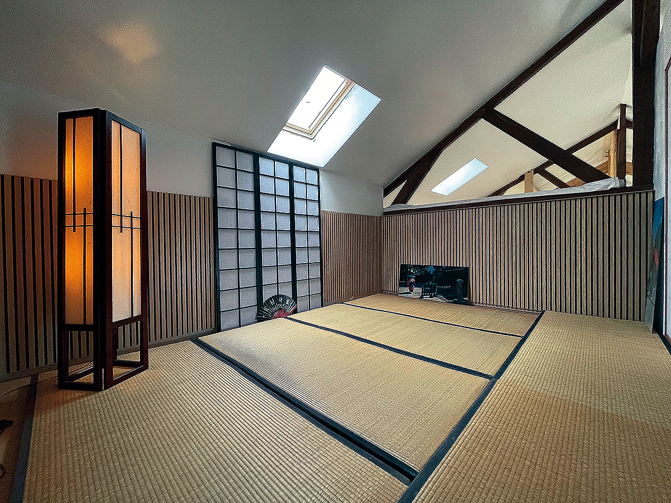 Très beau dojo traditionnel japonais de 200m2, avec un parquet de 160m2 de grande qualité spécialement conçu pour la pratique du kendo et des arts martiaux. Sanitaires-vestiaires, cuisine équipée et pièce de réception en tatami (paille) de 12m2.